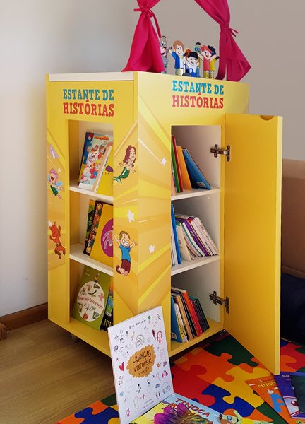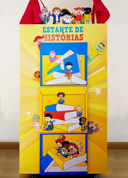 A estante e todos os itens que ela contempla foram pensados com muito carinho para auxiliar os professores na interação com seus alunos e como grandes facilitadores das atividades de promoção à leitura em sala de aula.